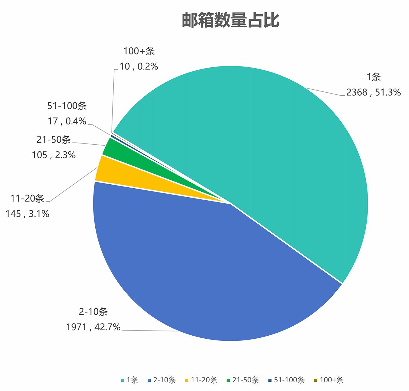 | 评论区间 | 邮箱数量 | 邮箱数占比 | 评论总数 | 评论数占比 | 说明 |