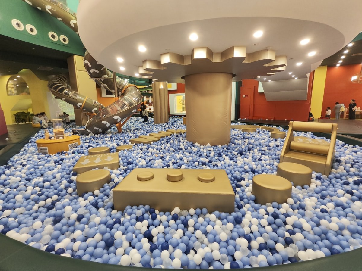 我们去的儿童乐园有三层,还挺大!一进门就是一片超梦幻的海洋球池,搭配旋转滑梯,别说孩子了,连我都想跳进去翻滚两圈~二楼还有互动游戏、角色扮演区和积木区,小朋友一看到这些,眼睛都亮了,换好防滑袜就“嗖”地一下冲进去,我都追不上她的节奏啦!