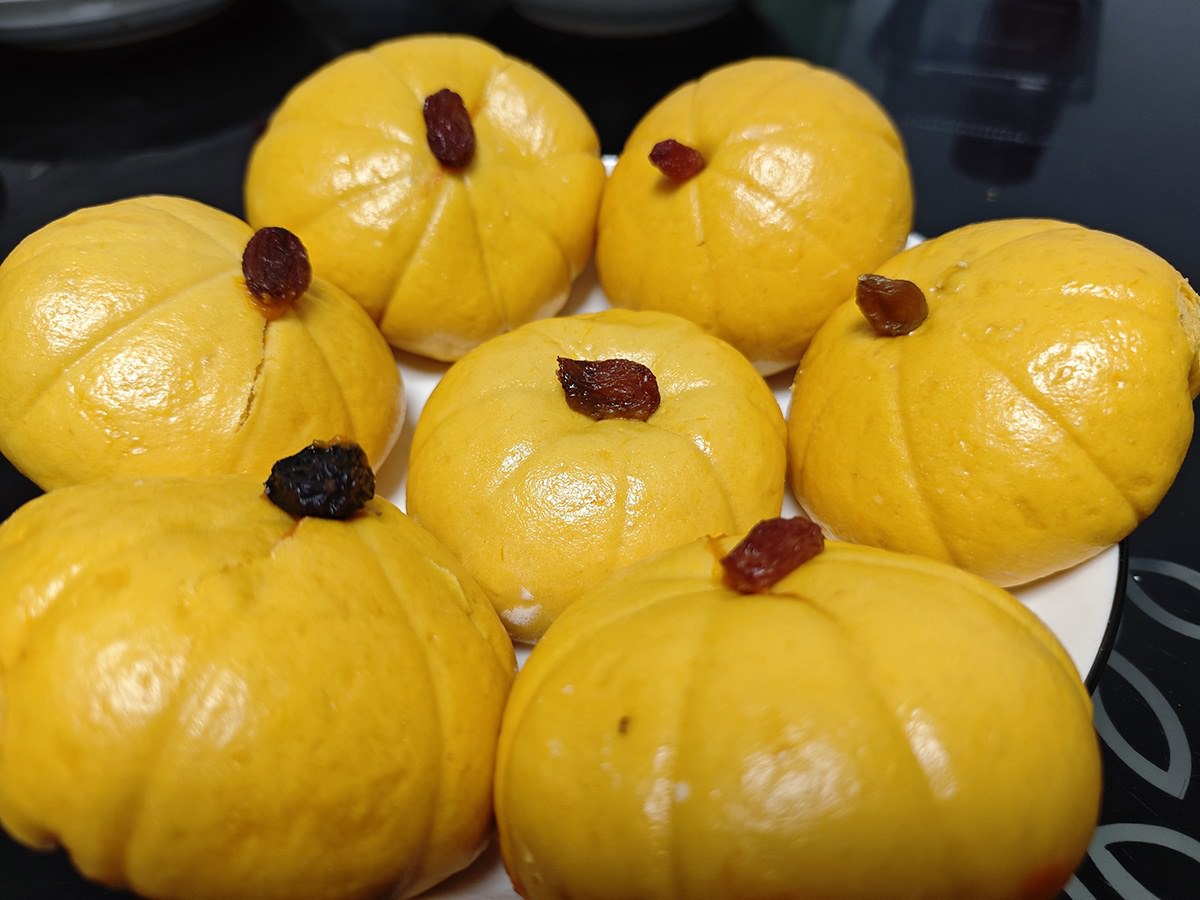 开水上锅,大火蒸15分钟。掀开锅盖的那一刻,金黄色的馒头格外诱人,胖乎乎的样子让人忍不住想捏一下。趁热尝了一个,松软香甜,南瓜的自然甜味和奶香完美融合,比想象的还要好吃。